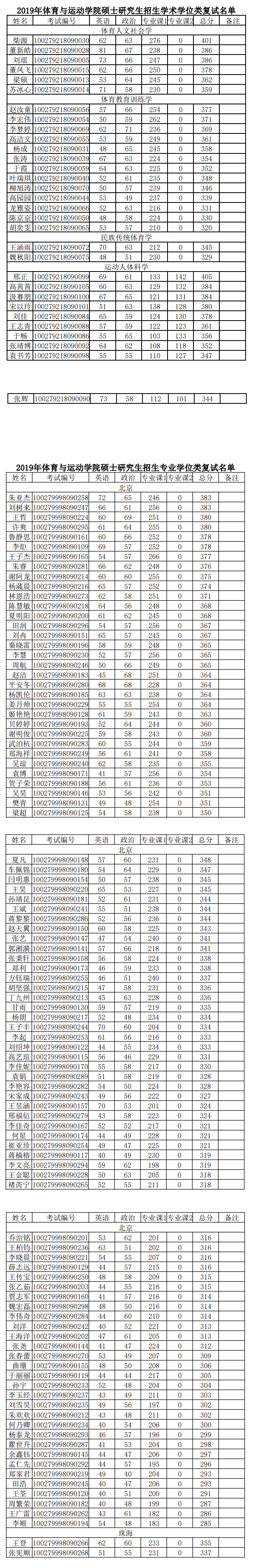 北师大考研辅导班:2019年北师大体育与运动学院硕士研究生招生考试复试名单