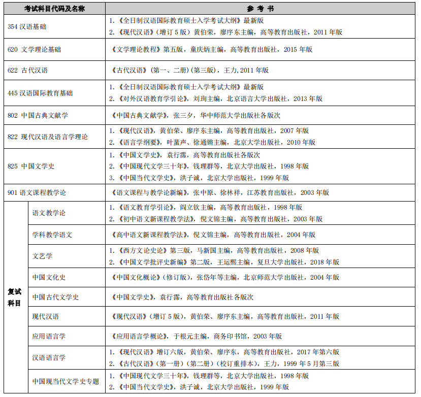湖北大学考研辅导班:2020 年湖北大学硕士研究生招生考试自命题科目参考书目 (文学院)
