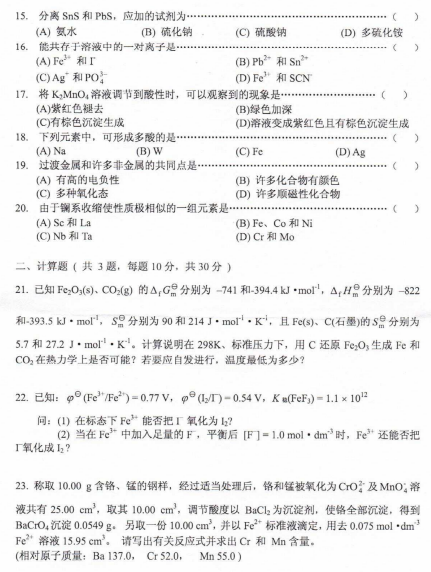 河师大考研辅导班:2018年河南师范大学考研621无机化学A真题