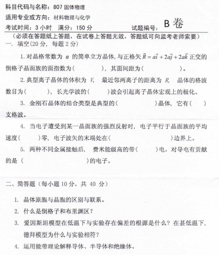 河师大考研辅导班:2018年河南师范大学考研807固体物理真题