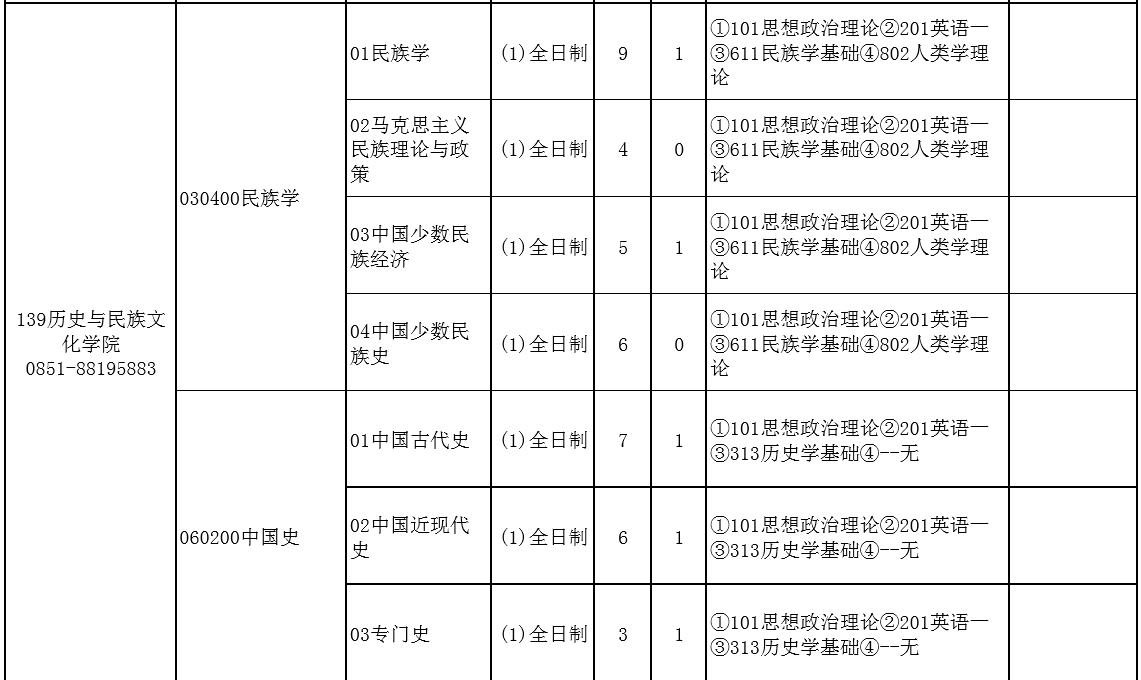 贵州大学考研辅导班:2020贵州大学历史与民族文化学院研究生专业目录、招生人数、考试科目