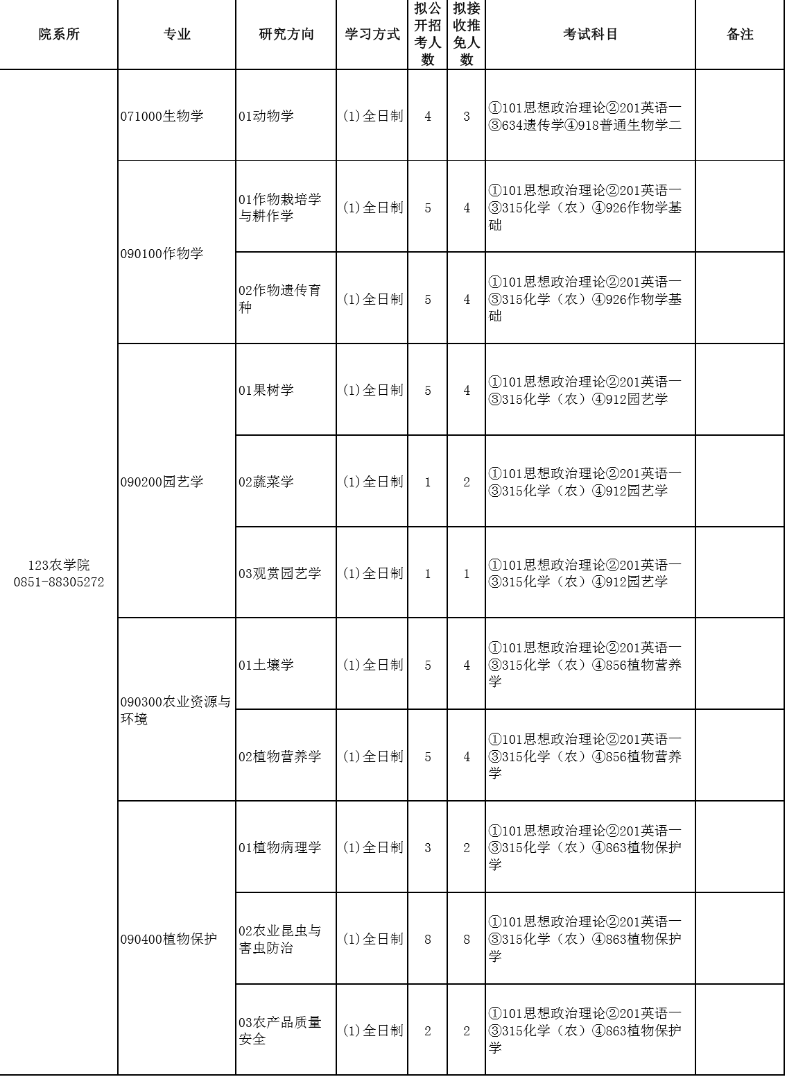贵州大学考研辅导班:2020贵州大学农学院研究生专业目录、招生人数、考试科目