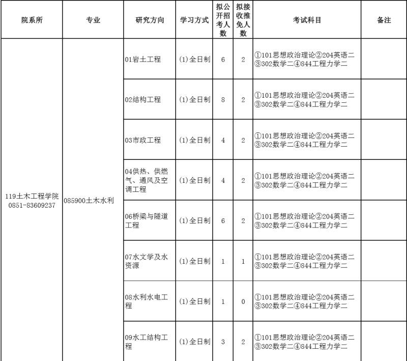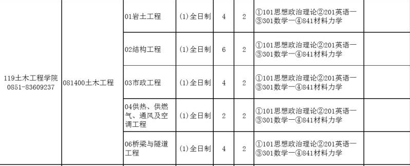 贵州大学考研辅导班:2020贵州大学土木工程学院研究生专业目录、招生人数、考试科目