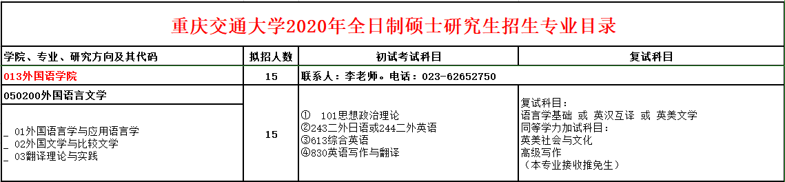 重庆交大考研辅导班:2020年重庆交通大学外国语学院考研招生专业目录