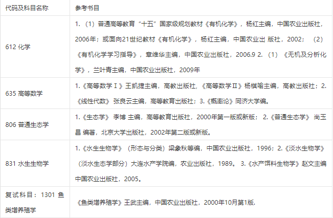 南农考研辅导班:2020年南京农业大学090801 水产养殖考研参考书目