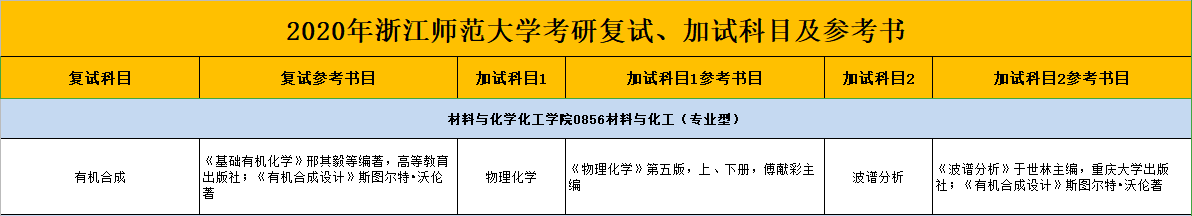浙师大考研辅导班:2020年浙江师范大学复试参考书目-0856材料与化工(专业型)