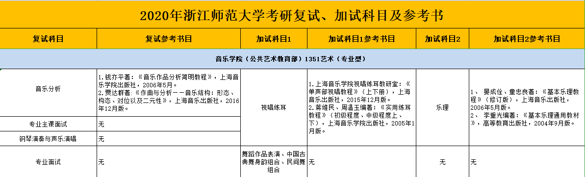 浙师大考研辅导班:2020年浙江师范大学复试参考书目-音乐学院1351艺术(专业型)