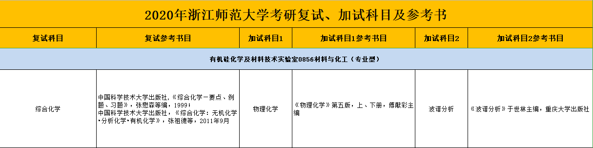 浙师大考研辅导班:2020年浙江师范大学复试参考书目-有机硅化学及材料技术实验室0856材料与化工(专业型)