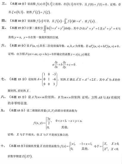 安徽师范大学考研辅导班:2018年安徽师范大学考研615高等数学一真题