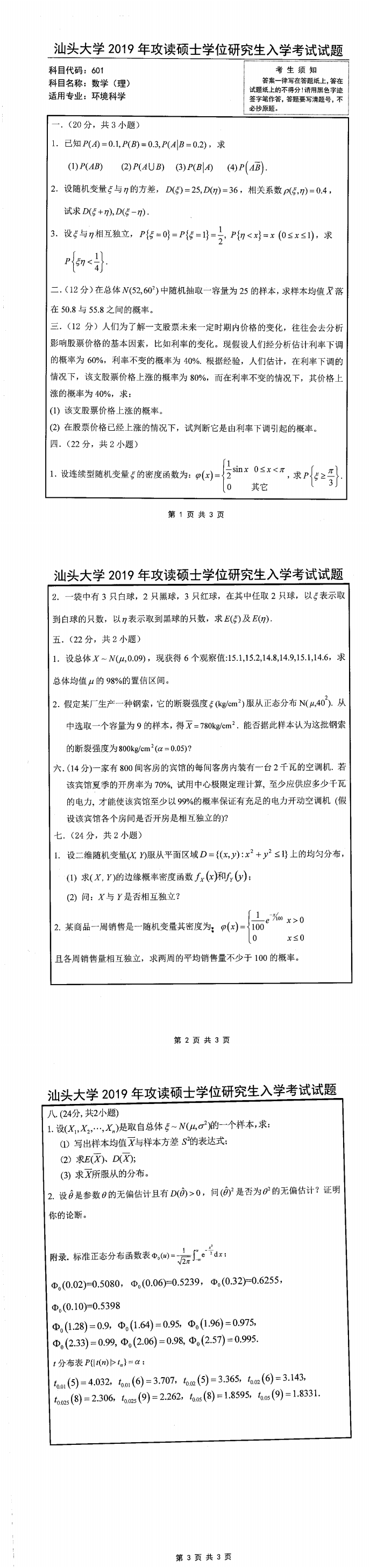 汕头大学考研辅导班:2019年汕头大学考研601数学(理)真题