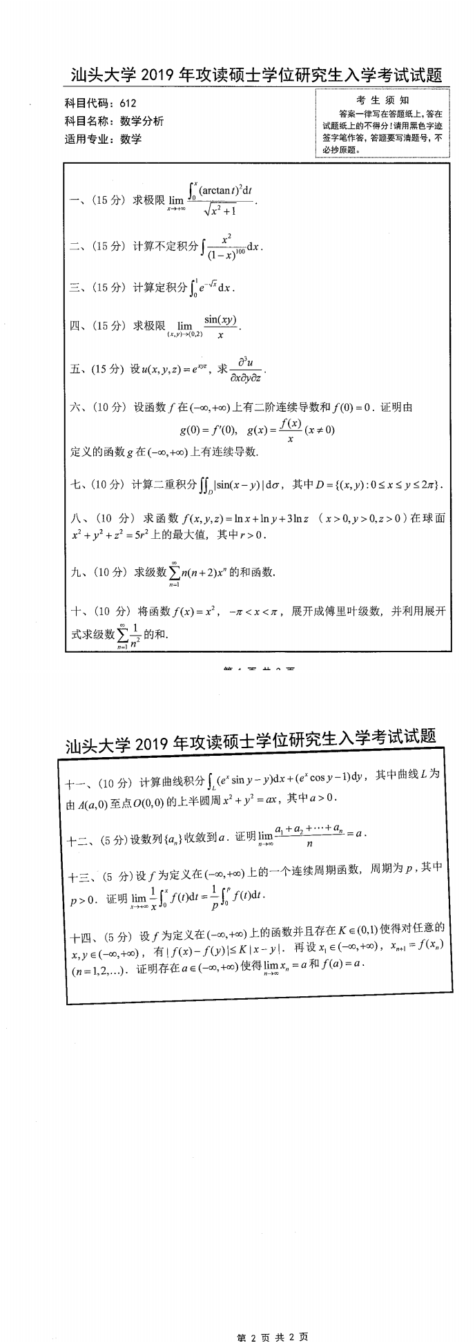 汕头大学考研辅导班:2019年汕头大学考研612数学分析真题