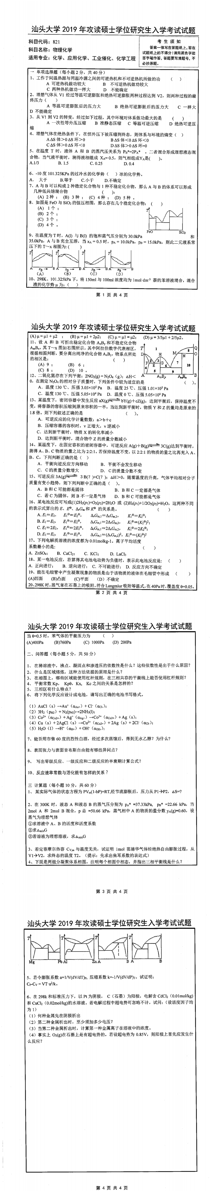汕头大学考研辅导班:2019年汕头大学考研821物理化学真题
