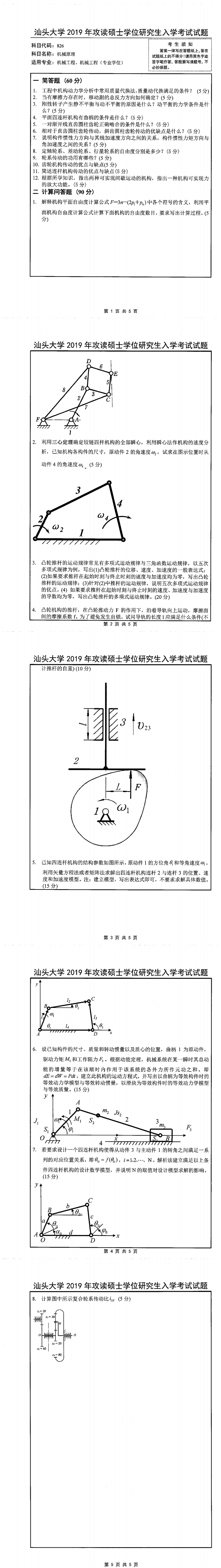 汕头大学考研辅导班:2019年汕头大学考研826机械原理真题