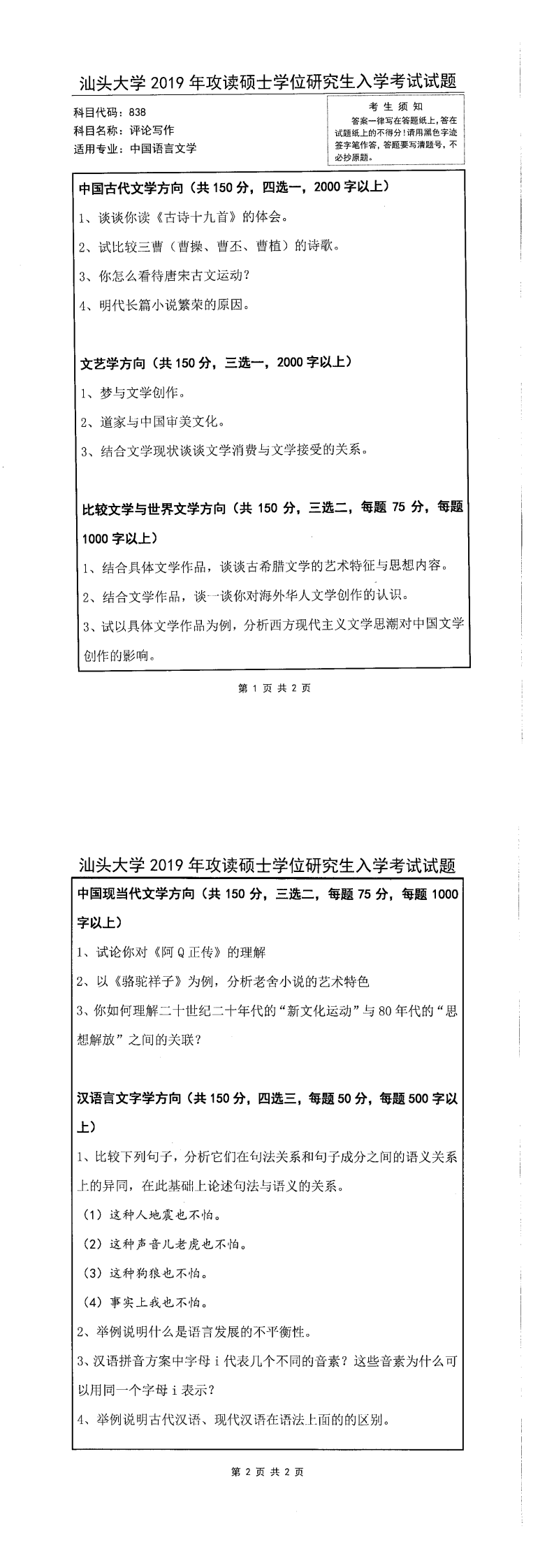 汕头大学考研辅导班:2019年汕头大学考研838评论写作真题