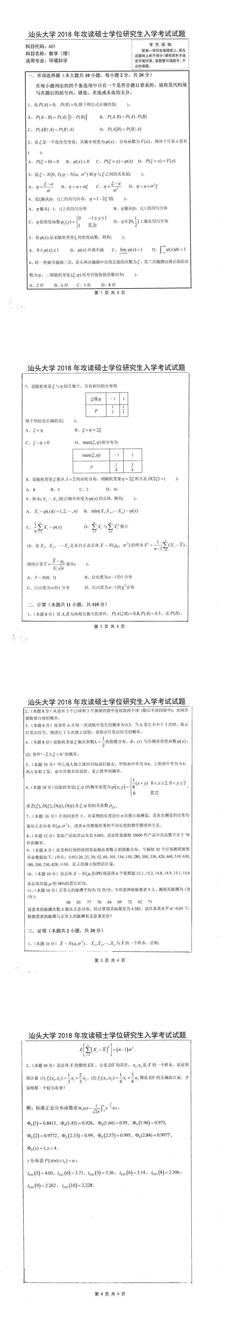 汕头大学考研辅导班:2018年汕头大学考研601数学(理)真题