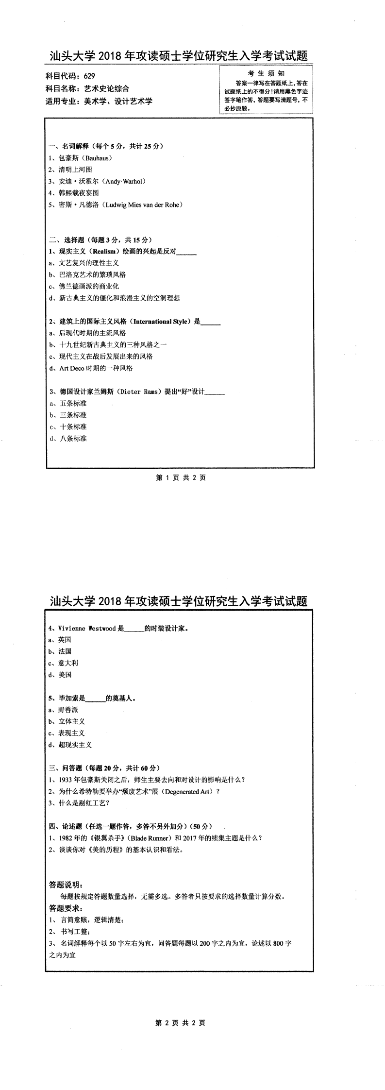 汕头大学考研辅导班:2018年汕头大学考研629艺术史论综合真题