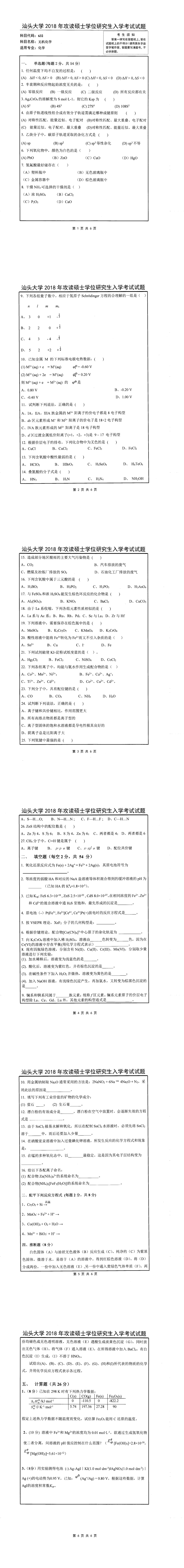 汕头大学考研辅导班:2018年汕头大学考研632无机化学真题