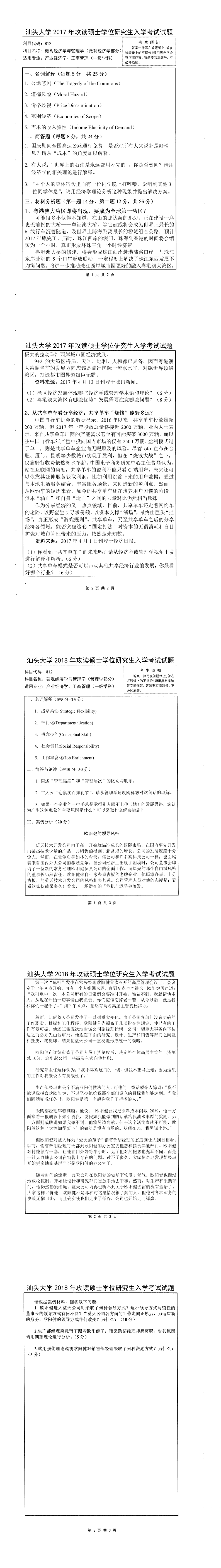 汕头大学考研辅导班:2018年汕头大学考研812微观经济学与管理学真题